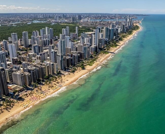 Ubicada en el noreste de Brasil, conocido como el caribe brasileño del Atlántico, Recife es una ciudad vibrante conocida por sus playas paradisíacas, su riqueza cultural y su animada vida nocturna. Conocida como la “Venecia de Brasil” por sus canales y puentes, esta ciudad combina historia, arte y naturaleza en un solo destino. Sus calles están llenas de coloridos murales, su música resuena en cada esquina y su gastronomía fusiona sabores afrobrasileños y portugueses, ofreciendo una experiencia única para los viajeros. Además, su cercanía con Olinda, Patrimonio de la Humanidad, la convierte en un punto de partida ideal para explorar el legado colonial del nordeste brasileño.
